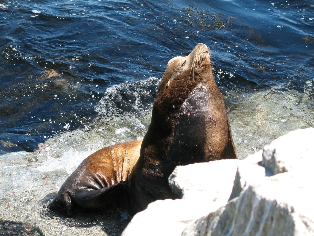 Fisherman’s Wharf- This old pier is home to a collection of restaurants and excursion companies which offer whale watching and fishing trips. Here you are sure to see sea lions piling themselves upon a barge and groaning at one another. Free samples of very good clam chowder will draw you in to a restaurant for happy hour.