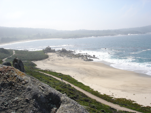 of this small neighborhood is stair/ trail access to bluff and beach trails complete with wildflowers, wildlife and rock formations. This secluded beach extends little more than a mile south from the lagoon at Carmel River state beach until it reaches Monastery beach.